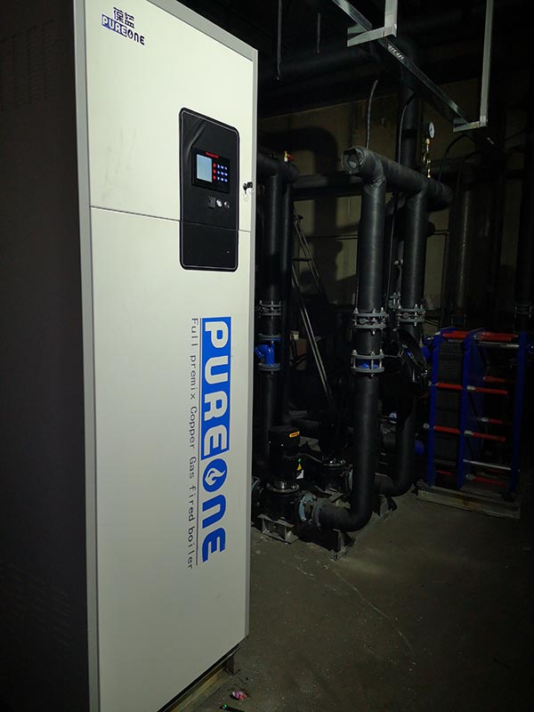 天津某小區(qū),2臺(tái)葆藍(lán)全預(yù)混低氮純銅變頻鍋爐供暖50000㎡。