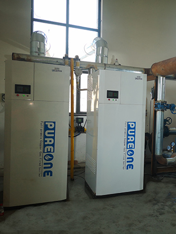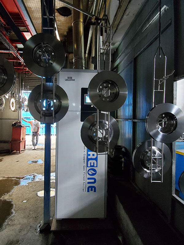 葆藍(lán)全預(yù)混低氮純銅鍋爐用于工廠鈍化池加溫。