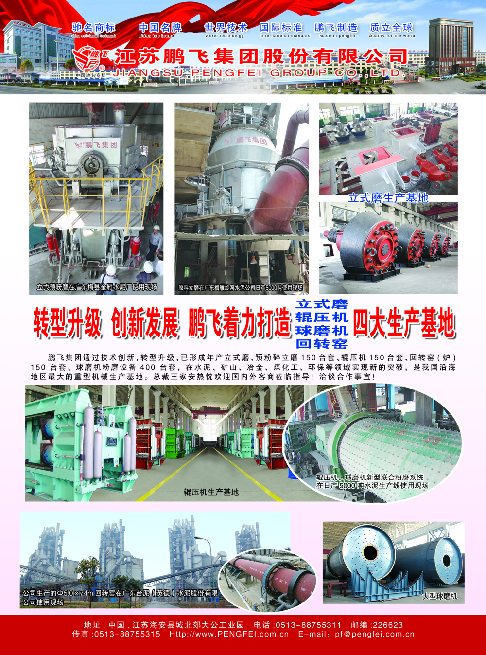 鵬飛集團(tuán)通過技術(shù)創(chuàng)新,轉(zhuǎn)型升級(jí),已形成年產(chǎn)立式磨、預(yù)粉碎立磨150臺(tái)套、輥壓機(jī)150臺(tái)套、回轉(zhuǎn)窯(爐)150臺(tái)套、球磨機(jī)粉磨設(shè)備400臺(tái)套,在水泥、礦山、冶金、煤化工、環(huán)保等領(lǐng)域?qū)崿F(xiàn)新的突破,是我國沿海地區(qū)大型重型機(jī)械生產(chǎn)基地??偛猛跫野矡岢罋g迎國內(nèi)外客商蒞臨指導(dǎo)!洽談合作事宜!