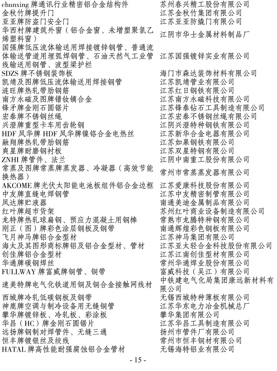 日前,江蘇省名牌戰(zhàn)略推進(jìn)委員會(huì)公布了2014年江蘇省名牌產(chǎn)品名單,“