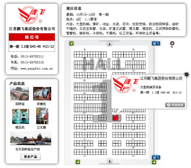江蘇鵬飛集團在第118屆廣交會上精心布置展位,印發(fā)所產(chǎn)各類成套設備的介紹手冊,并運用全景水泥生產(chǎn)線模型現(xiàn)場演示,委派具有多年工作經(jīng)驗的銷售、技術、售后等專業(yè)工作人員為顧客詳細介紹新產(chǎn)品、新技術,全面分析解答各類設備從購買到投產(chǎn)使用以及售后服務等每個環(huán)節(jié)的問題,為您排疑解難,與您達成共識。同時,也希望能和更多的國內(nèi)外公司加強聯(lián)系,互相合作,為客戶提供更加完美的產(chǎn)品。