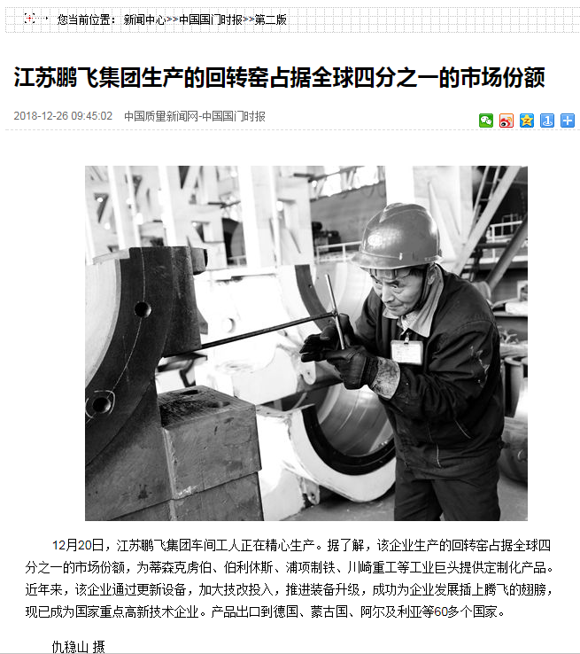 12月20日,江蘇鵬飛集團(tuán)車間工人正在精心生產(chǎn)。據(jù)了解,該企業(yè)生產(chǎn)的回轉(zhuǎn)窯占據(jù)全球四分之一的市場(chǎng)份額,為蒂森克虜伯、伯利休斯、浦項(xiàng)制鐵、川崎重工等工業(yè)巨頭提供定制化產(chǎn)品。近年來,該企業(yè)通過更新設(shè)備,加大技改投入,推進(jìn)裝備升級(jí),成功為企業(yè)發(fā)展插上騰飛的翅膀,現(xiàn)已成為國(guó)家重點(diǎn)高新技術(shù)企業(yè)。產(chǎn)品出口到德國(guó)、蒙古國(guó)、阿爾及利亞等60多個(gè)國(guó)家。