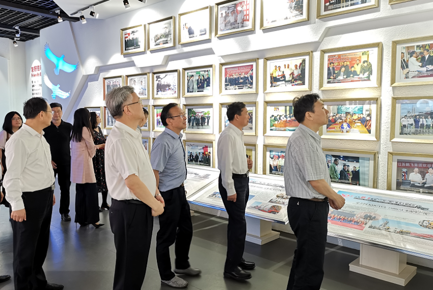 江蘇鵬飛集團(tuán)股份有限公司董事長王家安帶領(lǐng)調(diào)研組一行,參觀了生產(chǎn)車間和展廳,向調(diào)研組介紹企業(yè)國內(nèi)外發(fā)展定位及在“一帶一路”沿線國家落地項(xiàng)目的概況,向調(diào)研組介紹企業(yè)現(xiàn)階段發(fā)展?fàn)顩r、海外項(xiàng)目運(yùn)行情況及企業(yè)未來發(fā)展愿景。