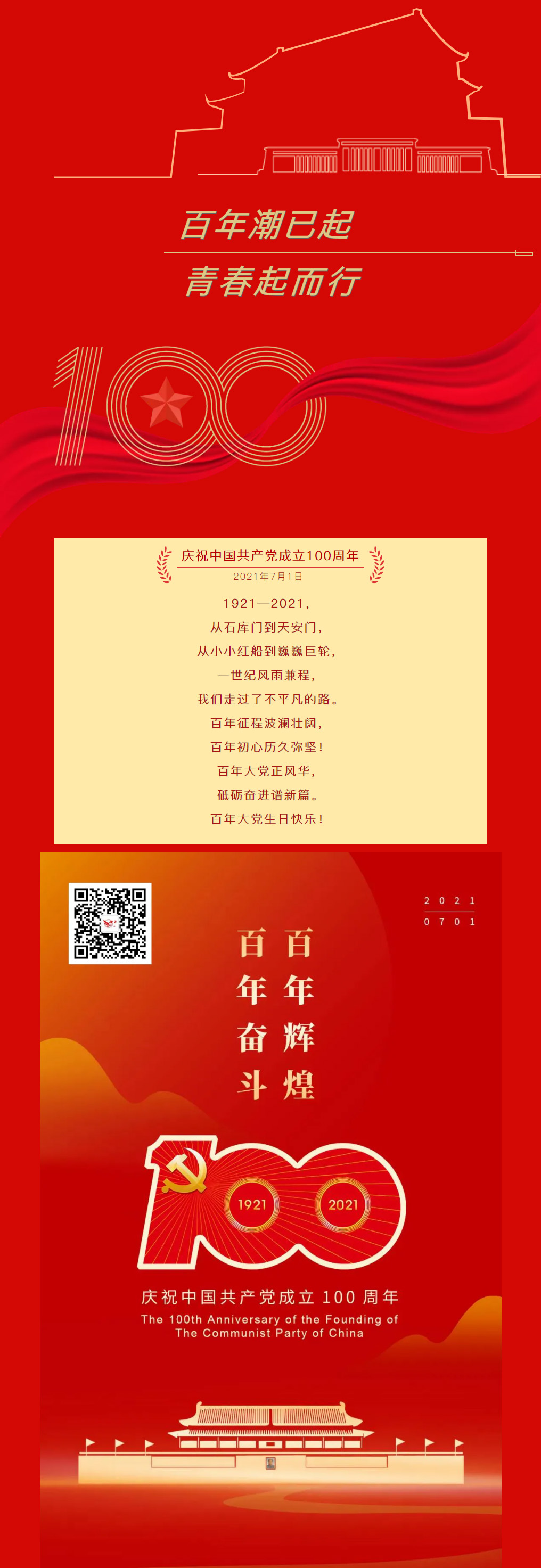 1921—2021,從石庫門到天安門,從小小紅船到巍巍巨輪,一世紀(jì)風(fēng)雨兼程,我們走過了不平凡的路。百年征程波瀾壯闊,百年初心歷久彌堅!百年大黨正風(fēng)華,砥礪奮進(jìn)譜新篇。百年大黨生日快樂!