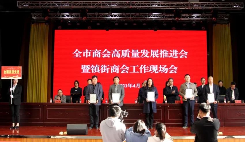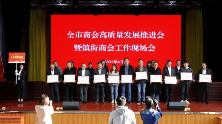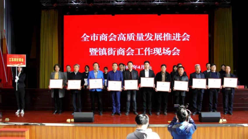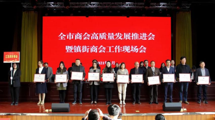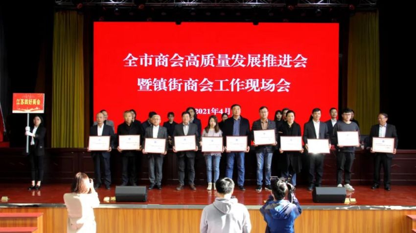 為學(xué)習(xí)貫徹中央、省商會(huì)工作會(huì)議精神,加快推進(jìn)全市商會(huì)基層組織建設(shè),推進(jìn)商會(huì)組織高質(zhì)量發(fā)展。4月19日下午,南通市工商聯(lián)(總商會(huì))在我鎮(zhèn)隆重召開(kāi)“全市商會(huì)高質(zhì)量發(fā)展推進(jìn)會(huì)暨鎮(zhèn)街商會(huì)工作現(xiàn)場(chǎng)會(huì)”。南通市政府副市長(zhǎng)、一級(jí)巡視員趙聞斌,江蘇省工商聯(lián)黨組成員、副主席李曉林,南通市委統(tǒng)戰(zhàn)部副部長(zhǎng)、市工商聯(lián)黨組書(shū)記王虎,海安市委常委、組織部長(zhǎng)、統(tǒng)戰(zhàn)部長(zhǎng)張明星,南通市工商聯(lián)黨組成員、副主席羅加宏,海安市政協(xié)副主席、工商聯(lián)主席、總商會(huì)會(huì)長(zhǎng)蔡祝平,大公鎮(zhèn)黨委書(shū)記金山存,黨委副書(shū)記、鎮(zhèn)長(zhǎng)魯競(jìng)等參加活動(dòng)。出席會(huì)議的還有省工商聯(lián)、市民政局相關(guān)處室領(lǐng)導(dǎo),各縣(市)區(qū)委統(tǒng)戰(zhàn)部分管副部長(zhǎng)、工商聯(lián)主要負(fù)責(zé)人及分管領(lǐng)導(dǎo),全市各鎮(zhèn)街(園區(qū))統(tǒng)戰(zhàn)委員,商會(huì)會(huì)長(zhǎng)代表,受表彰的全國(guó)抗疫先進(jìn)典型,全國(guó)、省、市四好商會(huì),榮獲全市商會(huì)十大工作品牌的商會(huì),商會(huì)十佳會(huì)長(zhǎng),十佳秘書(shū)長(zhǎng),部分市直商(協(xié))會(huì)主要負(fù)責(zé)人,以及市工商聯(lián)相關(guān)部室人員共計(jì)250余人。