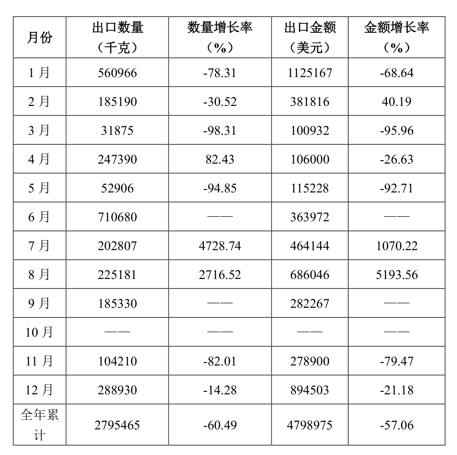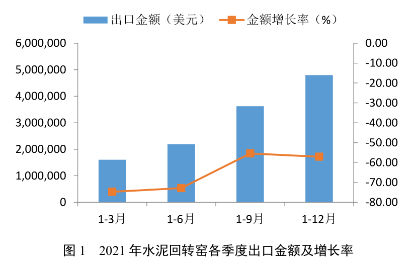 表1 2021年水泥回轉(zhuǎn)窯出口數(shù)量、金額及增長(zhǎng)率