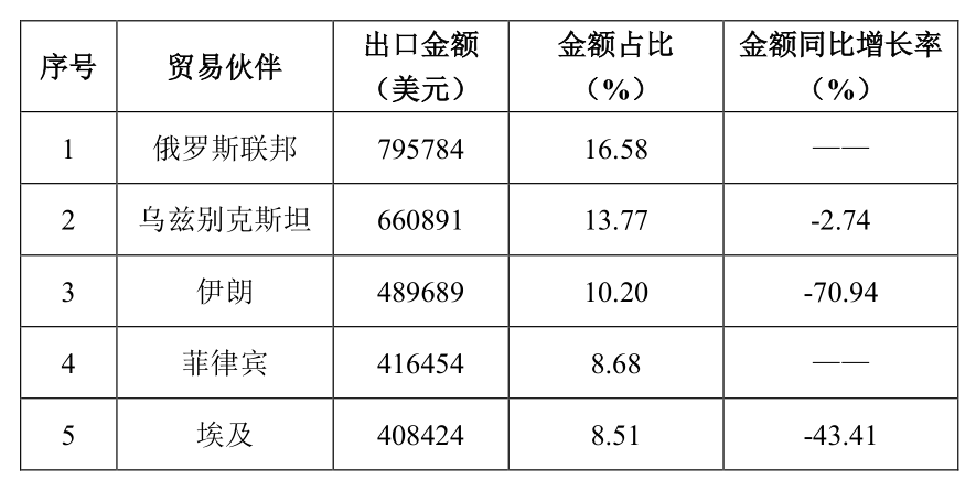表2 2021年水泥回轉(zhuǎn)窯主要出口國(guó)家或地區(qū)情況