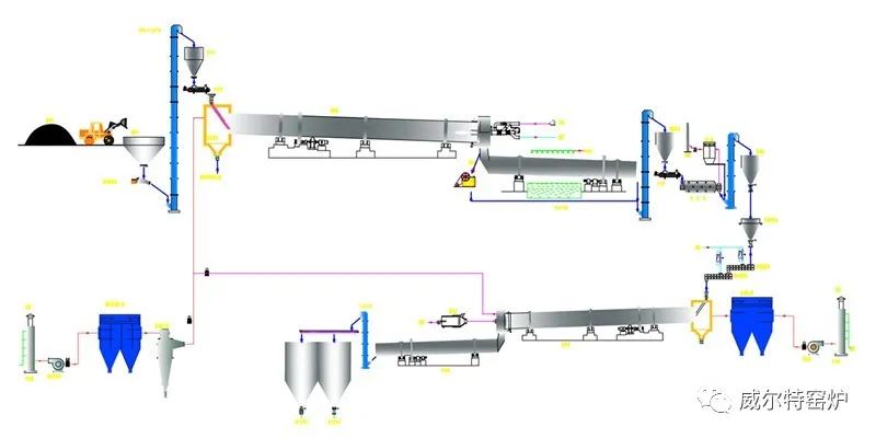 主要設(shè)備配置:酸化攪拌機(jī)、焙燒窯、單筒冷卻機(jī)、酸化窯、酸化窯配套冷卻窯、原料磨機(jī)、袋式收塵器、風(fēng)機(jī)等