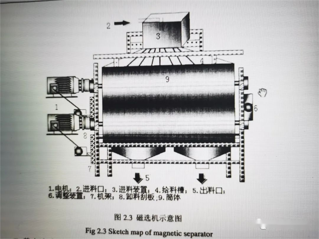 炙熱的菱鐵礦如果接觸氧氣很容易轉(zhuǎn)化為r-Fe2O3 ,甚至弱性的a-Fe2O3 ,導(dǎo)致弱磁選困難,為了防止焙燒礦在出窯時弱磁性赤鐵礦,故焙燒礦出窯方案設(shè)計為水封拉鏈水冷,出水溫度一般為70°C 左右。然后進料倉,再經(jīng)過磨碎分級進行磁選,選出精礦粉。