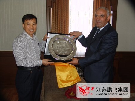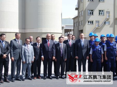 2012年5月30日,江蘇鵬飛集團(tuán)董事長(zhǎng)王家安先生應(yīng)阿塞拜疆GEMIKAYA GROUP業(yè)主的邀請(qǐng),參加了水泥廠投產(chǎn)一年的慶典活動(dòng),阿塞拜疆總統(tǒng)及NAXCIVAN總統(tǒng)親自參加水泥廠慶典活動(dòng),總統(tǒng)對(duì)鵬飛集團(tuán)的工程項(xiàng)目建設(shè)給予了高度評(píng)價(jià),總統(tǒng)先生并與鵬飛集團(tuán)董事長(zhǎng)王家安先生合影留念。阿塞拜疆電視臺(tái)、NAXCIVAN電視臺(tái)及阿各大新聞媒體及時(shí)報(bào)道總統(tǒng)出席GEMIKAYA GROUP水泥廠投產(chǎn)一年的慶典活動(dòng)情況。