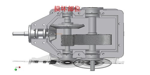 第二部分:減速機(jī)損壞維修以及后期防護(hù)。本公司四個(gè)鎖風(fēng)閥的減速機(jī)都采用弗蘭德的垂直軸減速機(jī),在鎖風(fēng)閥承受較大力矩的時(shí)候,減速機(jī)內(nèi)部各級(jí)齒輪也相應(yīng)的承受較大的力,同時(shí)由于該種減速機(jī)二級(jí)傳動(dòng)軸兩側(cè)采用推力調(diào)心滾子軸承,而且軸承端蓋沒有進(jìn)行螺栓緊固,只是做了密封處理,因此在承受較大力時(shí),也就是在鎖風(fēng)閥卡停的情況下會(huì)經(jīng)常出現(xiàn)將兩側(cè)軸承端蓋頂開的情況,浪費(fèi)潤(rùn)滑油,增加生產(chǎn)風(fēng)險(xiǎn)(如圖三)。