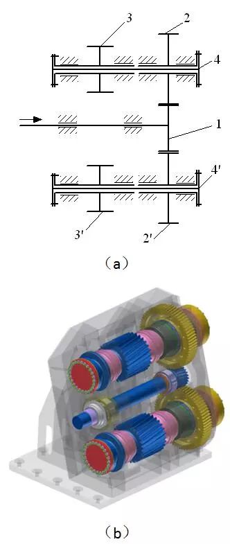 (2) 多點(diǎn)嚙合齒輪箱采用平行軸功率分流傳動(dòng)方式,結(jié)構(gòu)簡單,加工方便;
