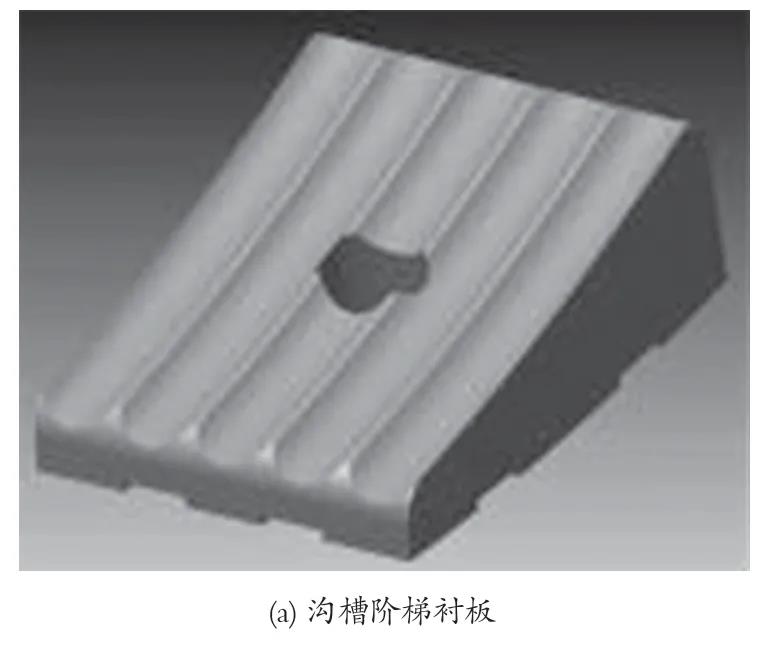 優(yōu)化前筒體襯板如圖 1 所示。一倉(cāng)采用溝槽階梯襯板,其有效長(zhǎng)度為 3.15 m,溝槽階梯襯板有磨損,階梯的高度差和溝槽可進(jìn)一步優(yōu)化;二倉(cāng)采用小波紋襯板+4 圈活化襯板,小波紋襯板厚度為 75 mm,降低了有效內(nèi)徑,增加了電耗,活化襯板磨損嚴(yán)重,排列方式可進(jìn)一步優(yōu)化。