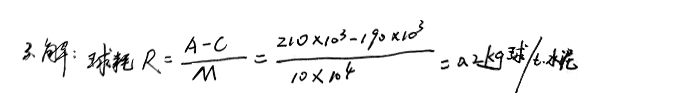 3、一臺(tái)磨機(jī)第一次裝入研磨體的質(zhì)量是210t,中間無補(bǔ)球,經(jīng)過粉磨10萬(wàn)噸水泥后清倉(cāng),清倉(cāng)后研磨體的總質(zhì)量為190t(不含碎球和過小的球),求該種研磨體球耗。